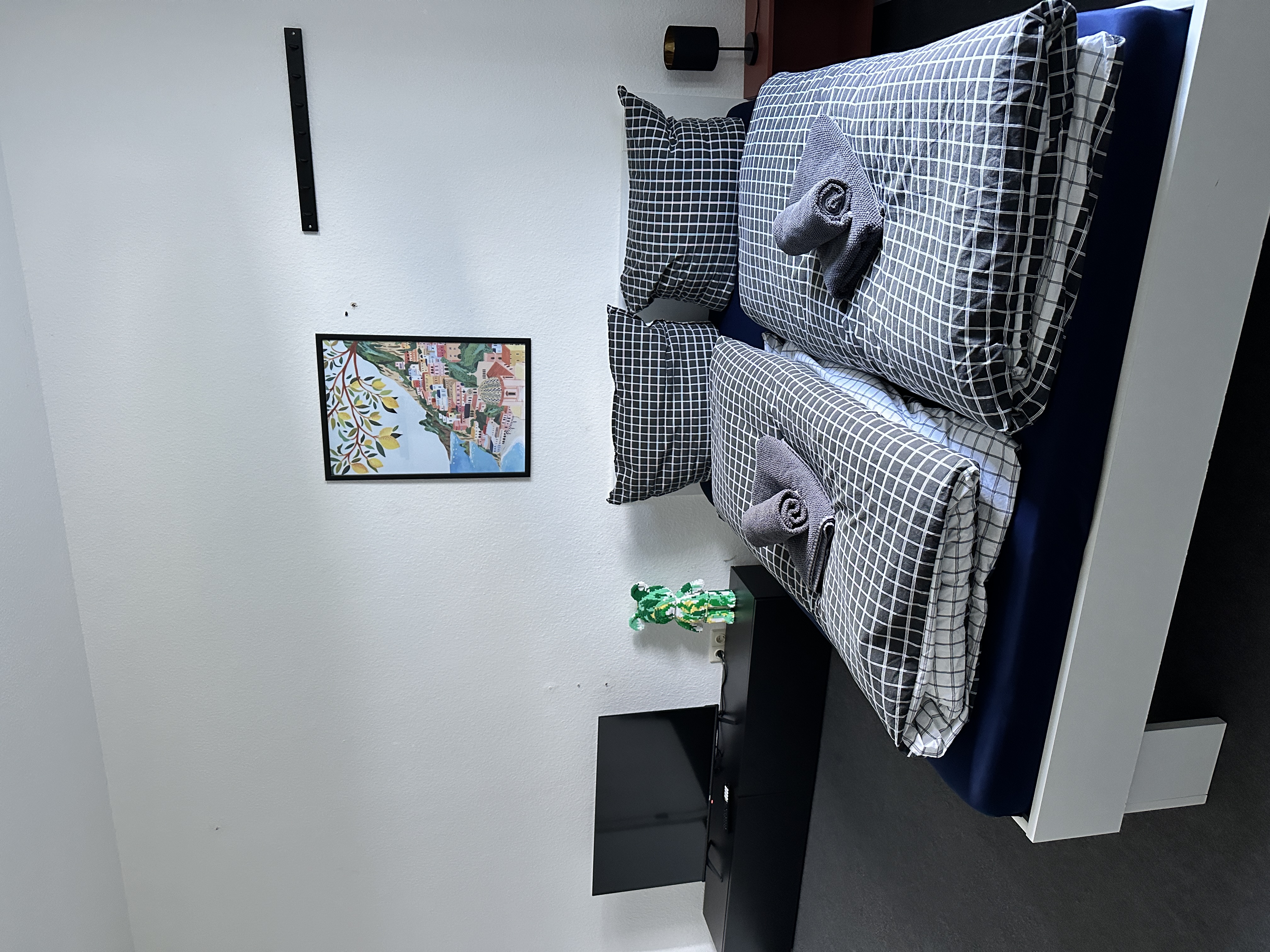 Alles für eine reibungslose Reise. Hochwertige Betten, praktische Schreibtische mit separaten Küchenzeilen und privatem Badezimmer.